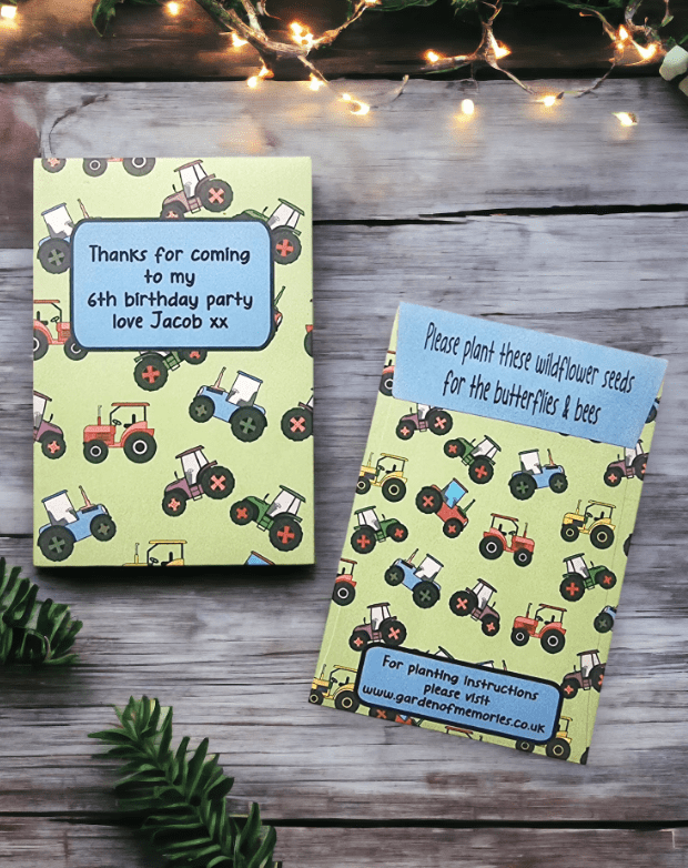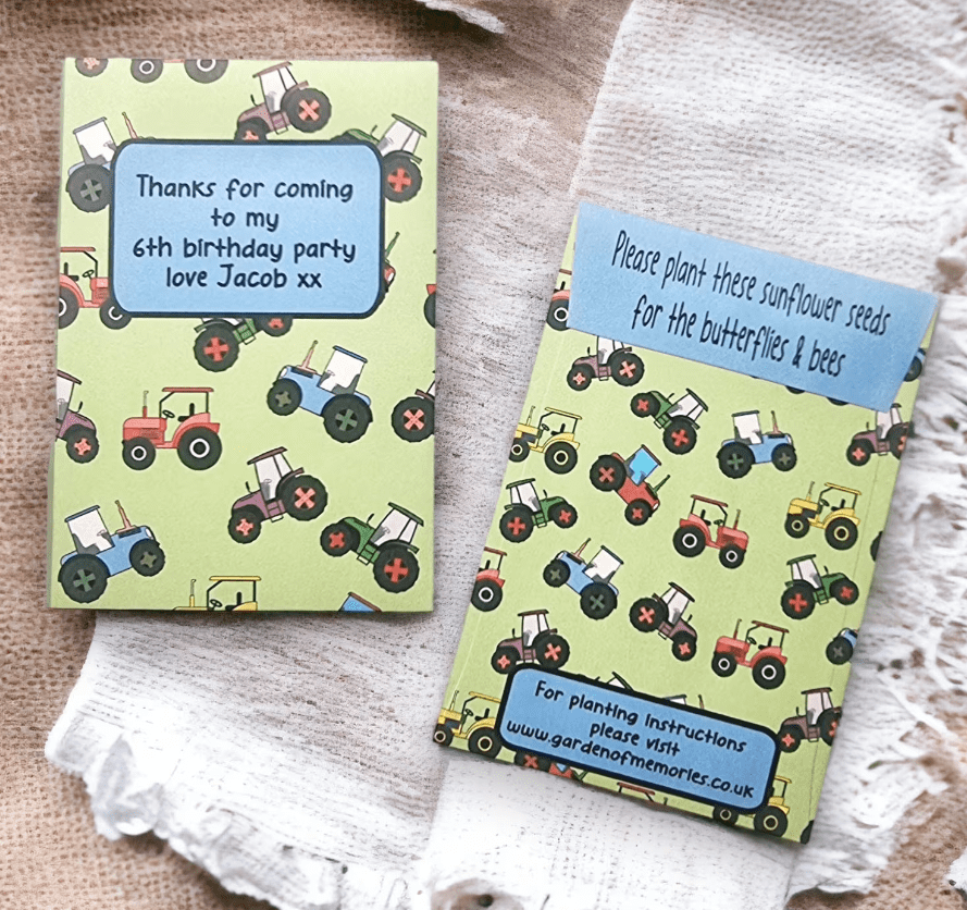 Personalised Tractor Birthday Seed Packets Party Envelopes for Favours Bag Fillers Gifts etc